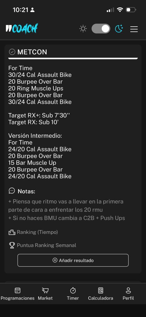 También puedes registrar tus benchmarks (marcas y resultados), para ir observando tus progresos día a día