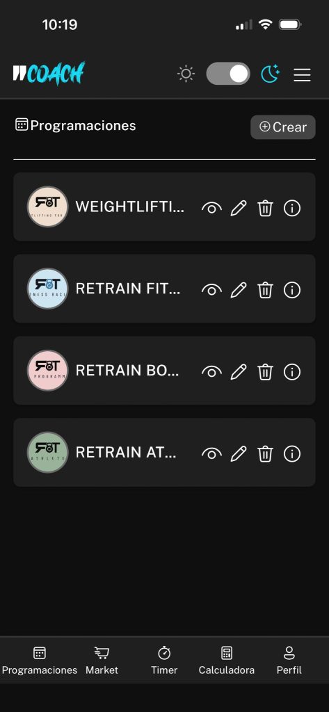 Puedes disponer de diferentes programas (Retrain Athlete, progresiones específicas, 1-1…) en un mismo sitio